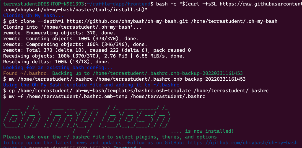 bash -c "$(curl -fsSL https://raw.githubusercontent.com/ohmybash/oh-my-bash/master/tools/install.sh)"