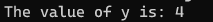 이 예제를 실행시키면 "The value of y is: 4" 가 출력됩니다.