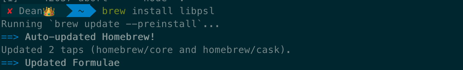 libpsl 라이브러리를 설치해주는 것으로 해결했다.