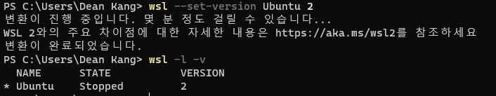 wsl --set-version Ubuntu 2