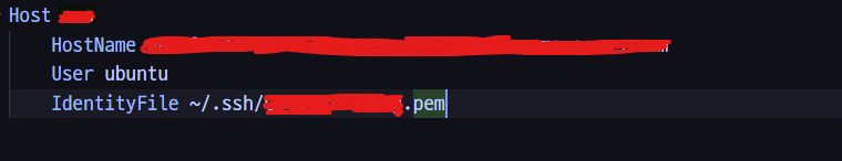 IdentityFile은 pem키 위치를 적어주시는데 다른 장소에 있다면 ~/. ssh로 옮겨주시는 것이 좋습니다.
