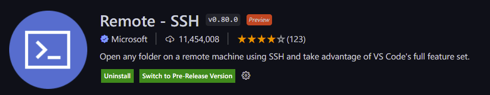 vscode의 extension 탭에서 Remote - SSH를 설치합니다.