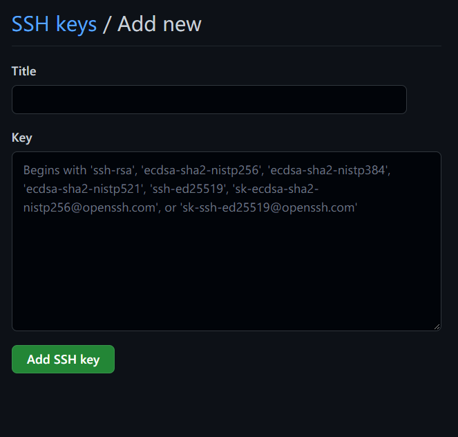 깃허브에 접속해서 settings에서 ssh탭을 들어가 New SSH key 버튼 클릭