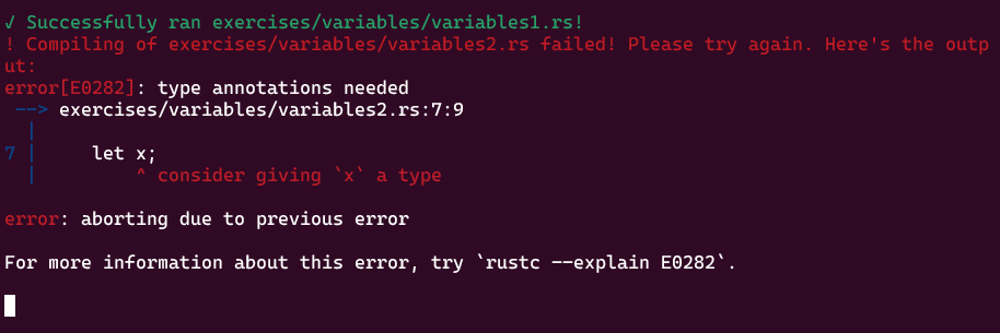 리눅스로 돌아와서 rustlings watch 명령어를 입력해주면