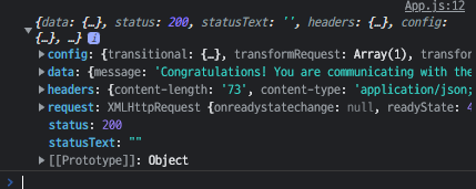 알맞게 입력했다면 응답으로 200과 메시지로 축하한다는 메시지를 받게 됩니다.