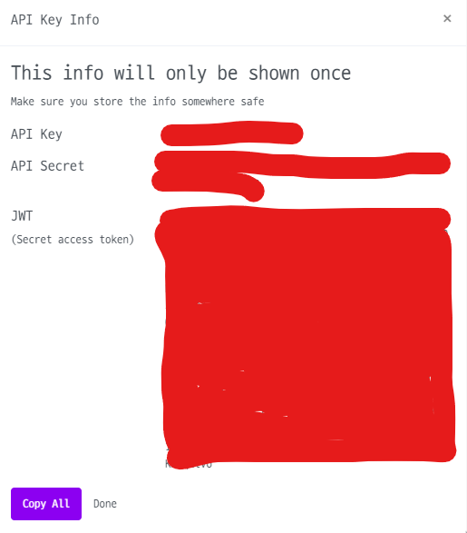 생성된 키를 메모장이나 다른 곳에 적어두신 후 리액트로 돌아갑니다.