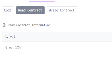 Box 컨트랙트에서 ReadContract를 확인해보면 val 값이 0인 것을 볼 수 있는데 이는 Box 컨트랙트는 storage를 사용하지 않고 storage는 프록시에 저장되기 때문입니다.