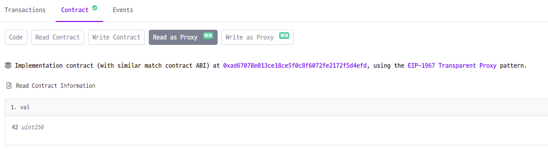 프록시에 deploy 스크립트에서 배포 시 입력했던 42가 저장되어 있는 것을 볼 수 있습니다.