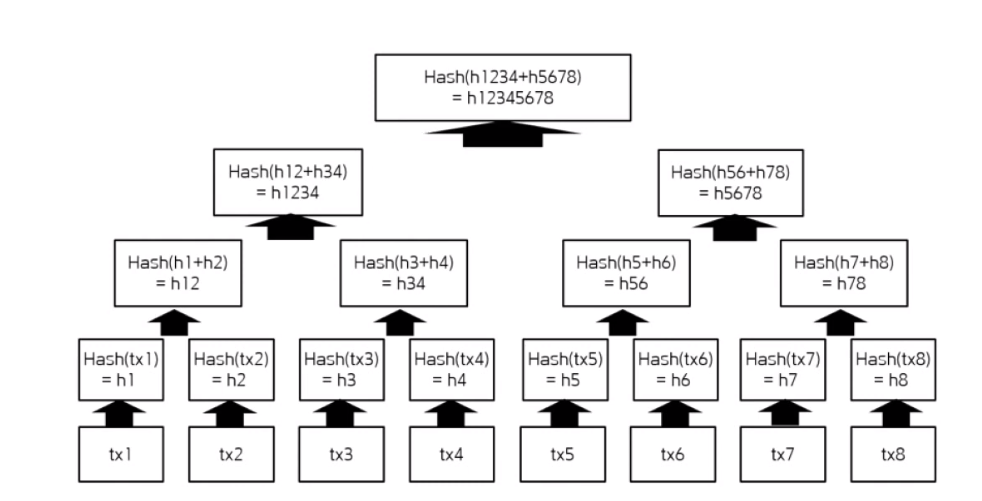 또한 만약 tx2가 위조 및 변형되었다면 머클루트의 해시 값까지 변경되기 때문에 트랜잭션의 위변조는 쉽지 않습니다.