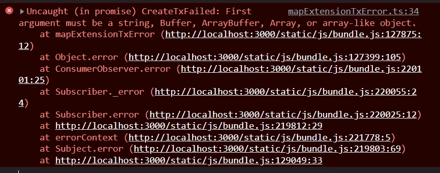 terra.js로 컨트랙트를 호출하려고 하는데 ExecuteMsg로 트랜잭션 생성 과정에서 다음과 같은 에러가 발생했다.